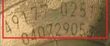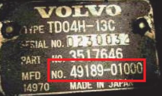Die Turbonummer ist auf ein Blechschild gedruckt und wie bei den Garrett-Turbos gibt es auch hier zwei Optionen: ein Blechschild und eine Prägung in den Aluminiumteil des Turbos. Alle Mitsubishi-Turbolader beginnen mit der Nummer 49, und wenn es sich um einen Typ mit Blechschild handelt, ist auf dem einen Typenschild die ganze Zahl abgebildet, auf dem anderen nicht gelistet und um danach zu suchen, muss es vorher gelistet werden, siehe unten.