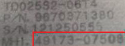 Die Nummer finden Sie auf dem Aluminiumteil des Turboladers. Die rückverfolgbare Nummer steht hinter dem SPEC-Etikett. Im folgenden Fall handelt es sich um die Nummer VJ27, ein anderes Beispiel könnte sein z.B. Mazda 2.0d mit der Bezeichnung VJ32.